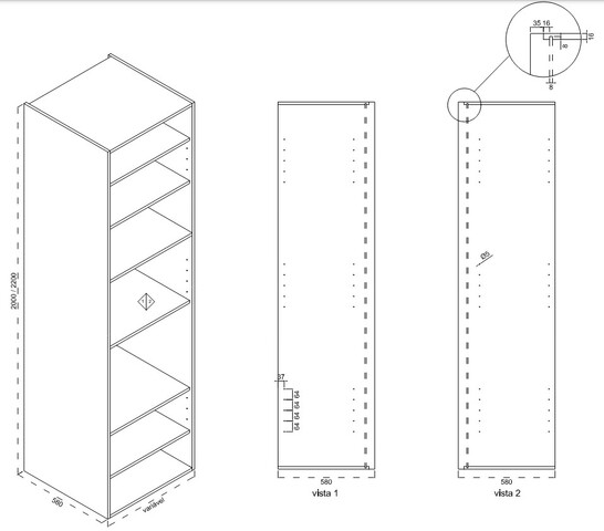 MODULO COLUNA ALUMINIO HIDROFUGO DESPENSEIRO 2200X400X580MM
