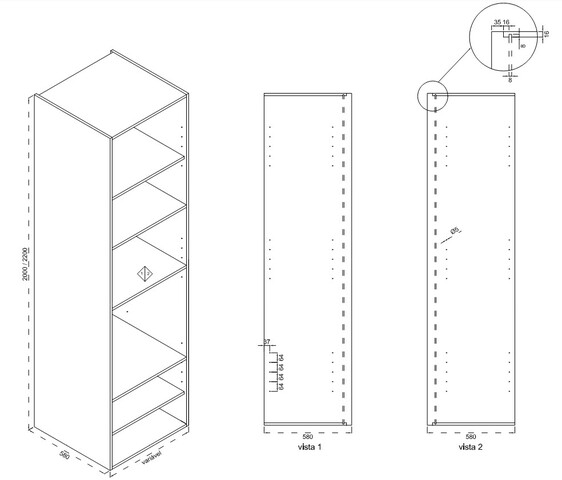 MODULO COLUNA ALUMINIO HIDROFUGO FORNO-MICRO 2200X600X580MM